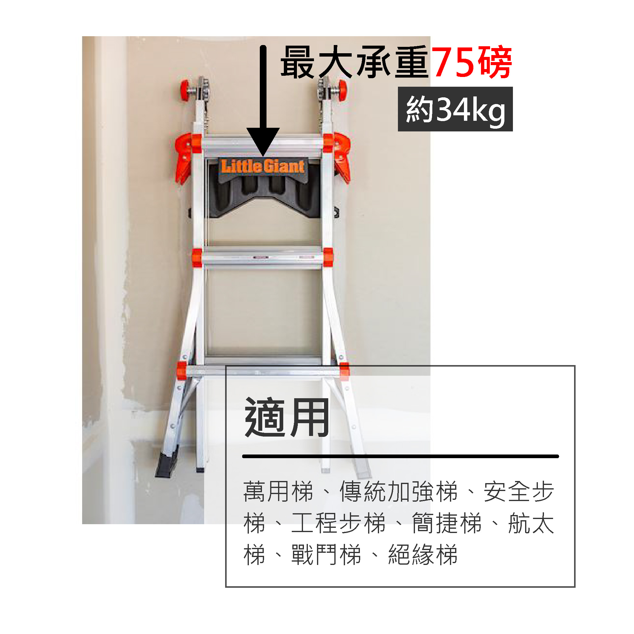●適用梯型:萬用梯、傳統加強梯、大T、安全步梯、工程步梯、簡捷梯、航太梯、戰鬥梯、絕緣梯