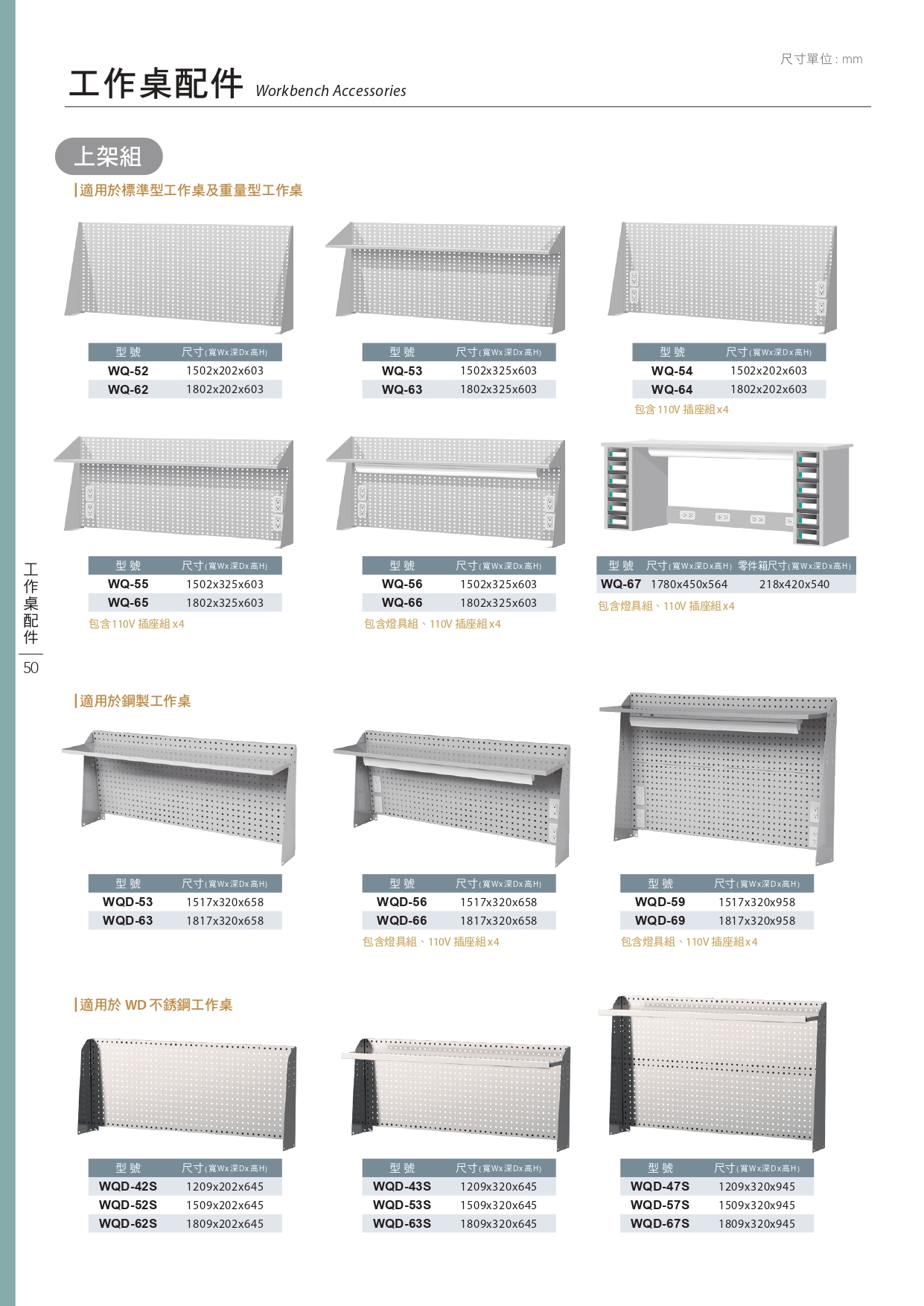 *掛板組+棚板組+插座組+燈具組 WQ-56 W1502xD325xH603 mm