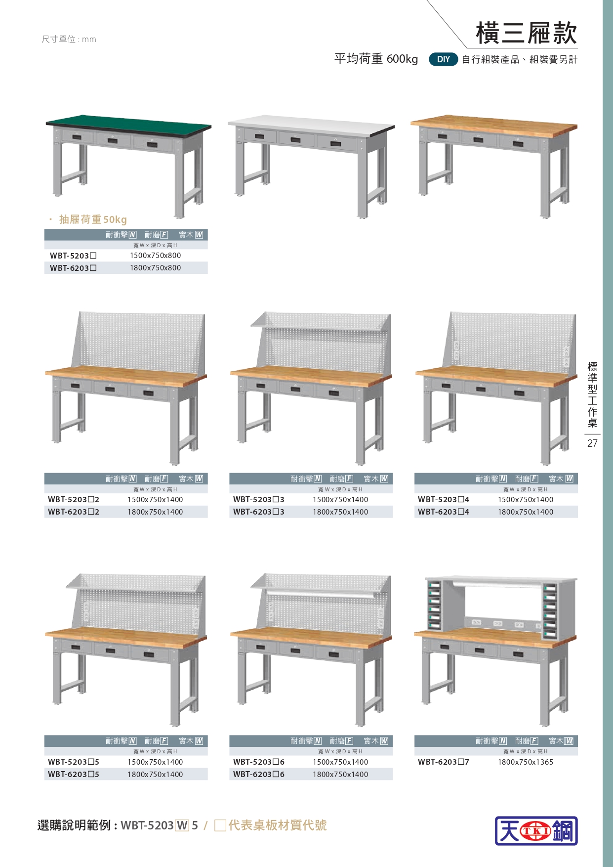 ► 工廠工作桌有耐磨、耐衝擊及原木桌板可選購。