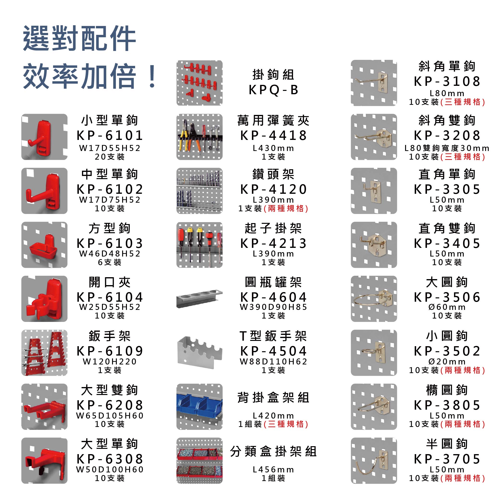 ► 上架方孔背掛板可搭配天鋼各類掛鉤,方便工具定位。