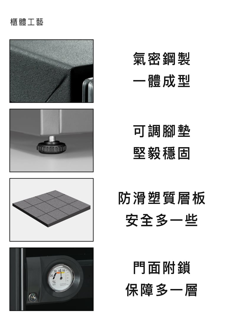 收藏家傾盡 30 年百萬用戶經驗,鑽研空間濕度控制技術與材料,並以自然無害、低耗能方式設計產品,一切都是為了打造更合宜的居家/商業空間。收藏家防潮技術,有效為您解決濕度帶來的困擾、避免發霉/受潮、為珍貴收藏品保值;國際標準校驗溼度計,將濕度視覺化,方便您一眼掌握空間濕度狀態;穩定氣密工法,讓物件免受劇烈濕度變化影響而產生質變、裂解等問題,更能安全維持狀態。