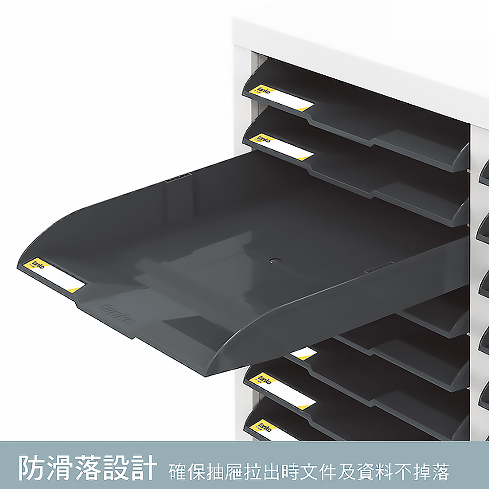 ► 防止滑落設計:確保抽屜拉出時,文件或資料不致掉落,造成資料散亂。